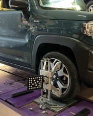 こんにちは、ヒデちゃんです。今年は花火を見る事がなくて夏らしさがなかったのですが、エス・プラウドの工場内では今も打ち上げ花火が見ることが出来ます!その名はユッカ・ロストラータ♬見れば見るほど幻想的です。今年も残りわずかですがやり残しのないようにしていきます。 今回ご紹介する4輪アライメントはスズキ ハスラー MR52Sでのご入庫です。それではいつものようにターゲットを装着していき測定していきます♬ フロン