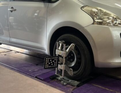 こんにちは、ヒデちゃんです。名古屋 2026年 JOINTSに出店してきましたよ。ブースに色々な方が来て頂き本当にありがとうございました。来場者数も多かったので1日があっという間でした。その分?歳なのか帰りはクタクタでしたが、とても勉強になり楽しめた1日でした。話しだすと長くなるのでこれぐらいにしときます♬♬ 今回ご紹介する4輪アライメントはトヨタ ラクティス SCP100でのご入庫です。それではいつものようにターゲットを装着していき測定していきます♬ フロント側から測定データを確認していくと左右のトー角が左側が内側に右側は外側に基準値より外れています。 左右のトー角を調整していきます♬ バッチリ基準値内に入りました♬♬ 続きまして、リア側を確認していきます♬左側のトー角が基準値より外れています。 フロントを調整して見るとリア側も基準値内に入