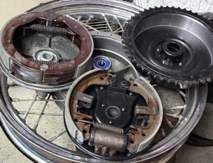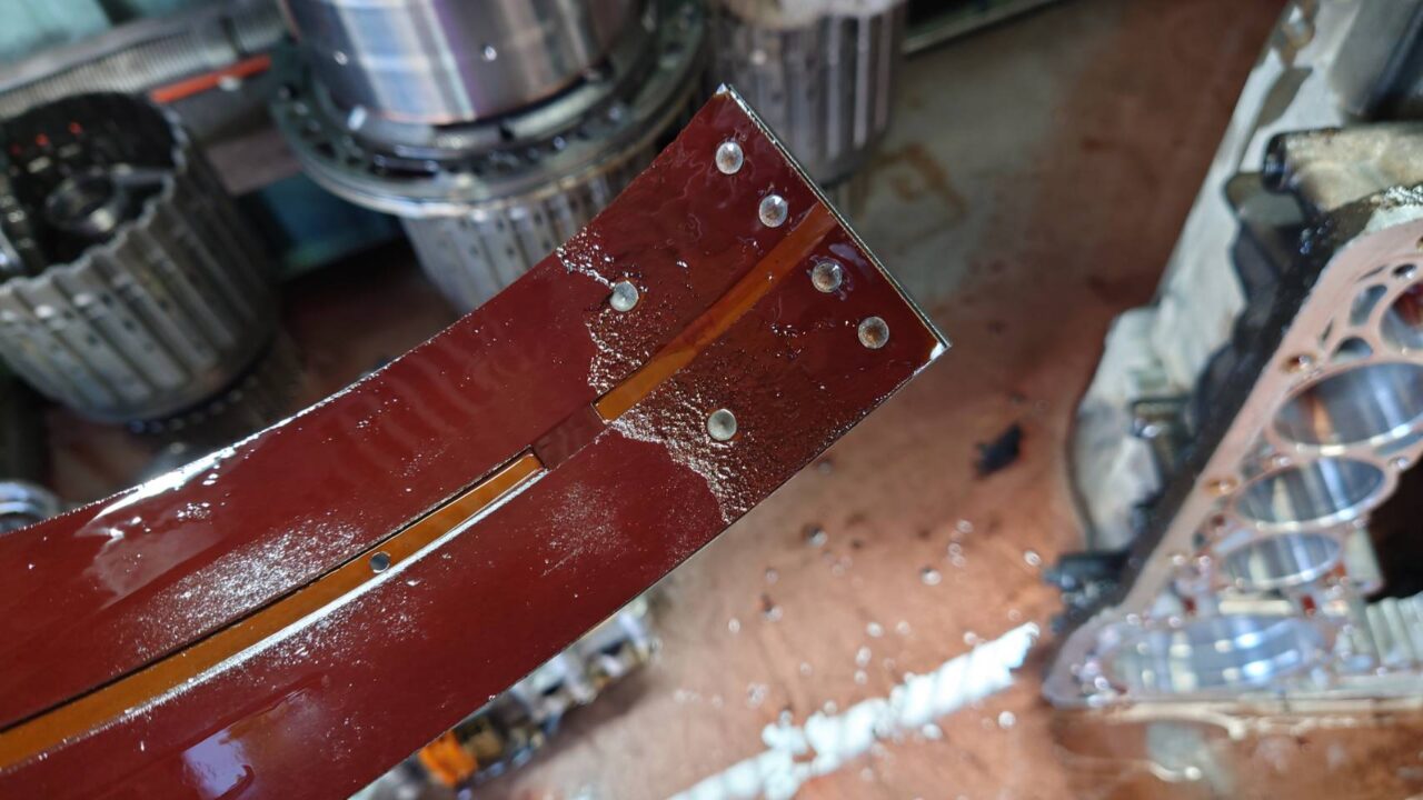 分解を進めると バンド ブレーキの摩擦材が少し剥離しているのを発見!