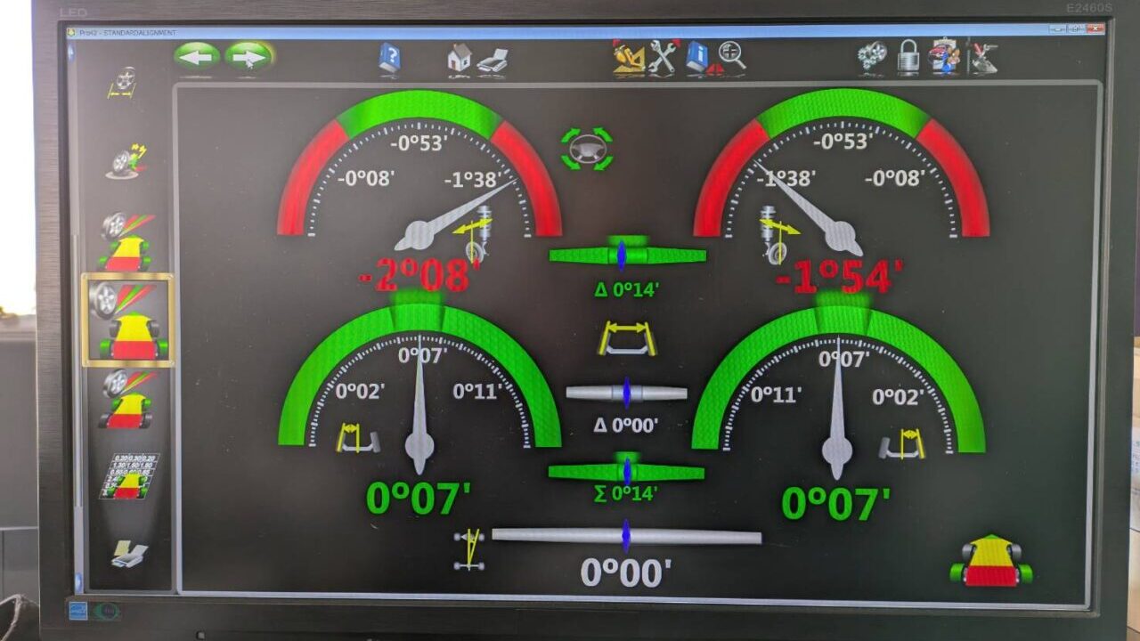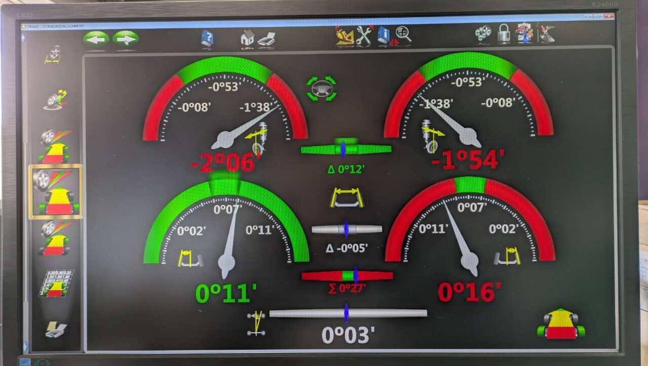 キャンバー角も基準値より外れていますがキャンバー角は調整出来ないのでトー角を調整していきます♬