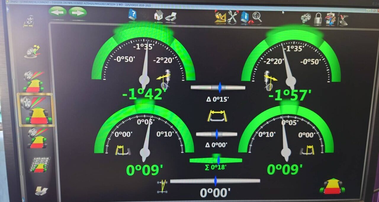 今回ご紹介する4輪アライメントはトヨタ クラウン AZSH20でのご入庫です。