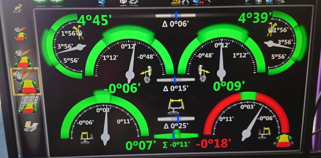 リア側は調整出来ないですがバッチリ基準値内に入っています。