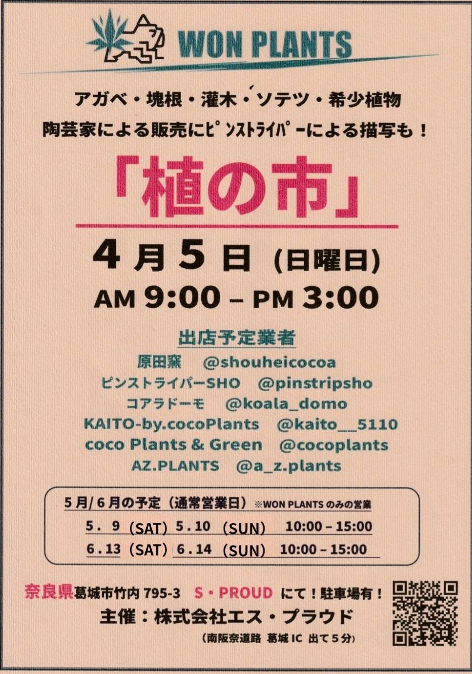次回はイベント「植の市」です!興味ある方は是非ともお立ち寄りください。