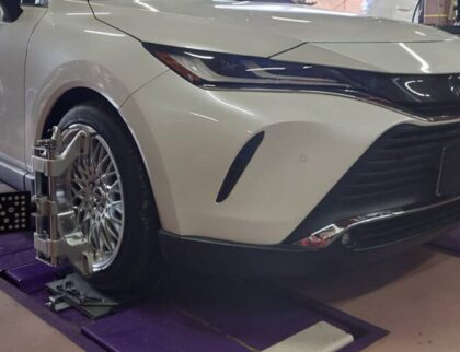 こんにちは、ヒデちゃんです。皆様のおかげで植の市のイベントも大盛況で終える事が出来ました。植の市に来て頂いた方に感謝致します。これからも盛り上げていきます。とうとう2026年ジョインツが明日、ポートメッセ名古屋で開催されます。今年はバイクではなくク〇マでの出店です。何?を出店するかはお楽しみ♬に・・・・ 今回ご紹介する4輪アライメントはトヨタ NZE215 カローラでのご入庫です。それではいつものようにターゲットを装着していき測定していきます♬ フロント側から測定データを確認していくと左右のトー角が左側が外側に右側も外側に基準値より外れています。左右のトー角を調整していきます♬ バッチリ基準値内に入りました♬ 続きまして、リア側を確認していきます♬左右のキャンバー角・右側のトー角が外側に基準値より外れています。 左右のキャンバー角は調整出来ないのでトー角を調整